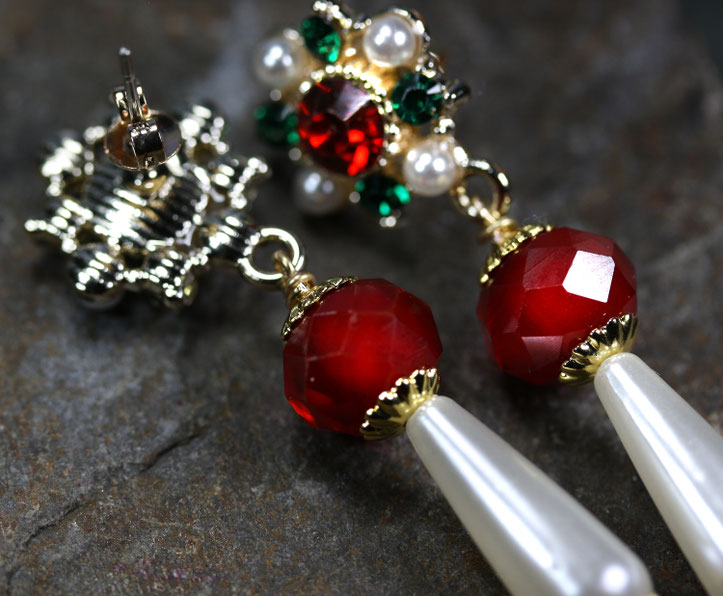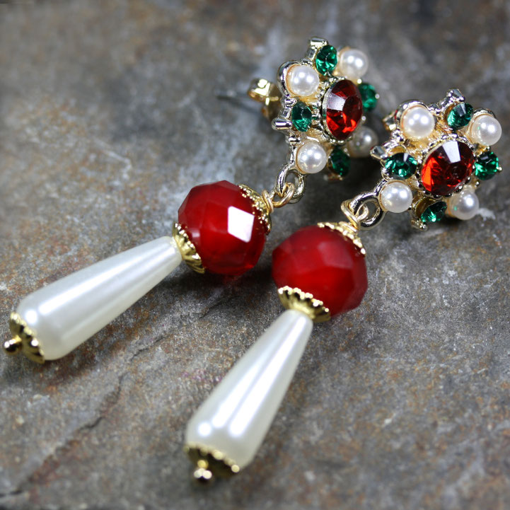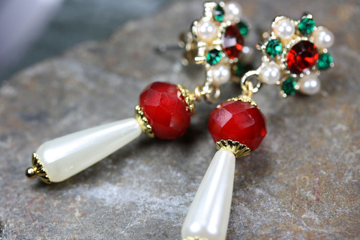 Der Ohrschmuck ist mit hübschen großen Schmucksteckern versehen. Die roten Glasschliffperlen sind halbtransparent, somit hat das elegante Rot der Perle eine warme samtige Erscheinung. Der Ohrschmuck hat eine wunderschöne festliche Ausstrahlung.