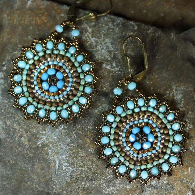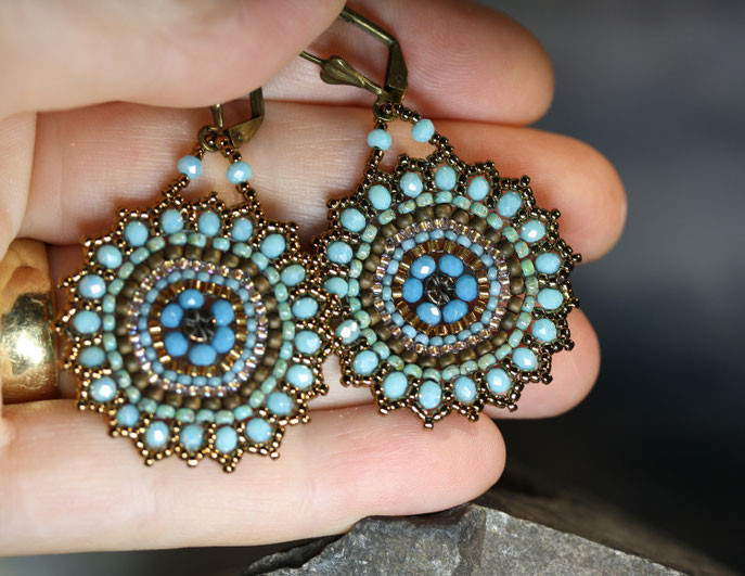 "Mandala" bedeutet Kreisform. Die symmetrischen Muster eines Mandalas umrahmen stets den "heiligen Mittelpunkt" - ein Symbol für die Seele des Lebens und der Selbstfindung. Mein gefädelter Ohrschmuck ist extrem zeitintensiv hergestellt, er ist federleicht (2-3 Gramm pro Anhänger), flexibel, äußerst angenehm zu tragen und zugleich absolut langlebig.