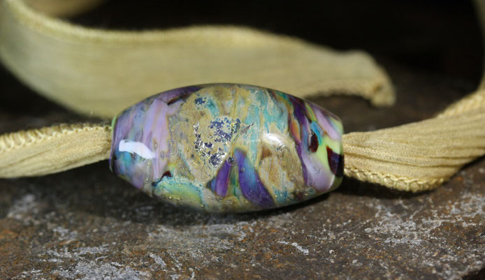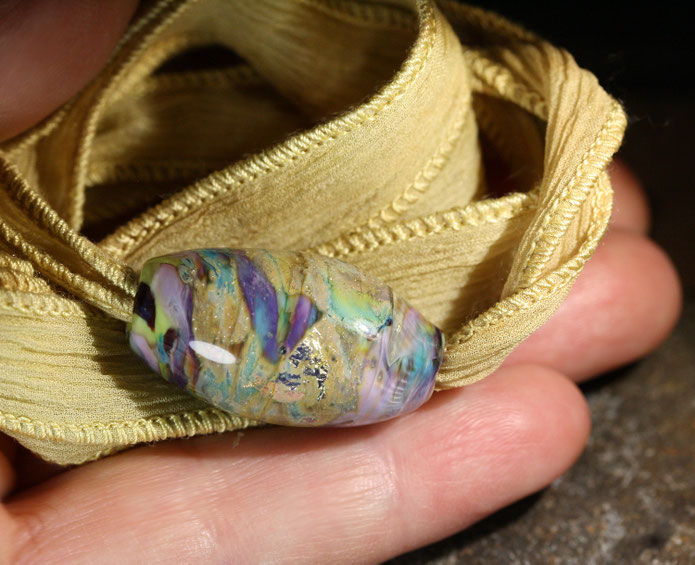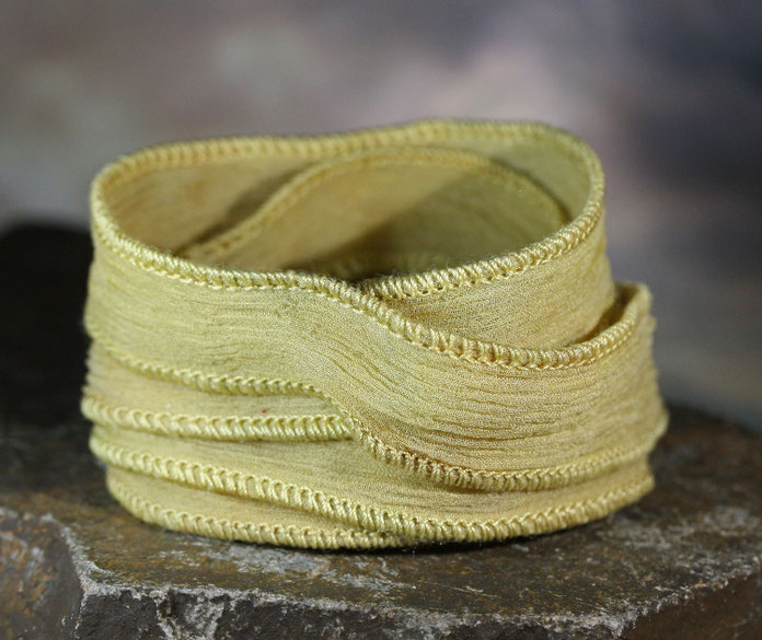 Das Band besteht aus feinster Seide und ist in Handarbeit angefertigt. Die Enden sind mit Mini-Quetschperlen versehen (Durchmesser ca. 2,5 mm), sodass du deine Kettenanhänger gut durchfädeln kannst. Mit einem Knoten oder einer Schleife im Nacken, ist die Länge variabel. Als Armschmuck eignet sich das Band ebenfalls hervorragend. Ob mit oder ohne Anhänger, ist es ein lässiger und farbenfroher Blickfang. Meine handgefertigten Seidenbänder sind absolut farbecht, denn sie werden von mir nach der Farbgestaltung kurz gekocht, dadurch können sie problemlos gewaschen und gebügelt werden. Ich verwende hochwertige französische Seidenfarben.