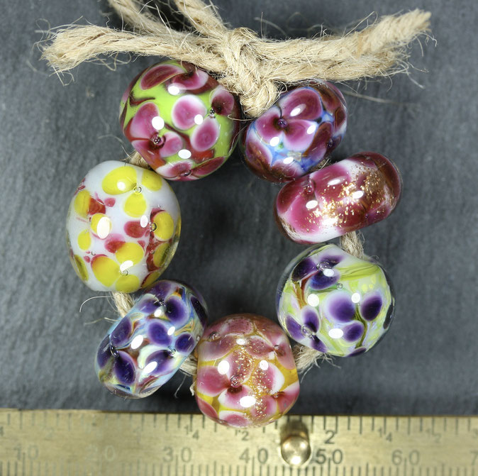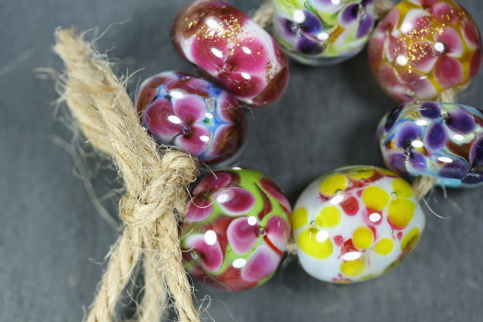 Anzahl: 7 Stück handgefertigte Unikat-Glasperlen