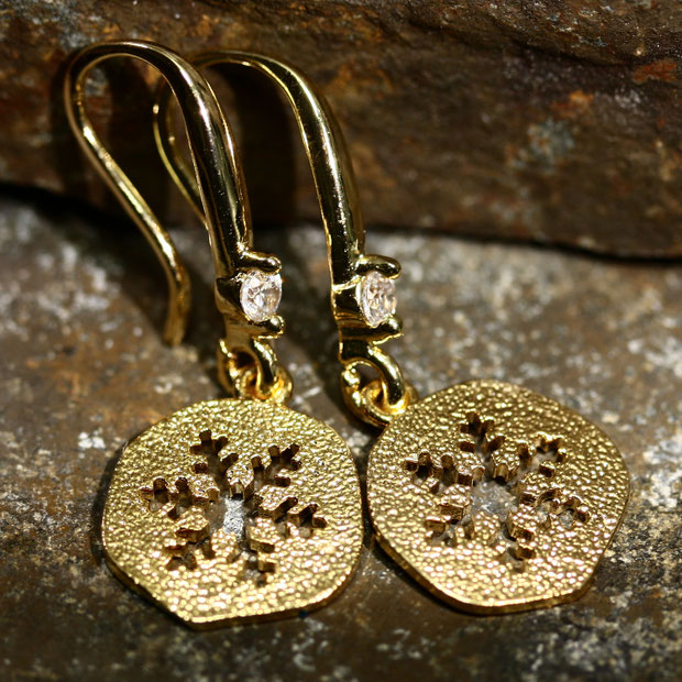 Der zarte, goldglänzende Ohrschmuck ist der ideale Begleite in der kalten Jahreszeit.