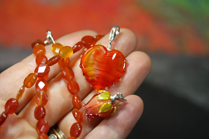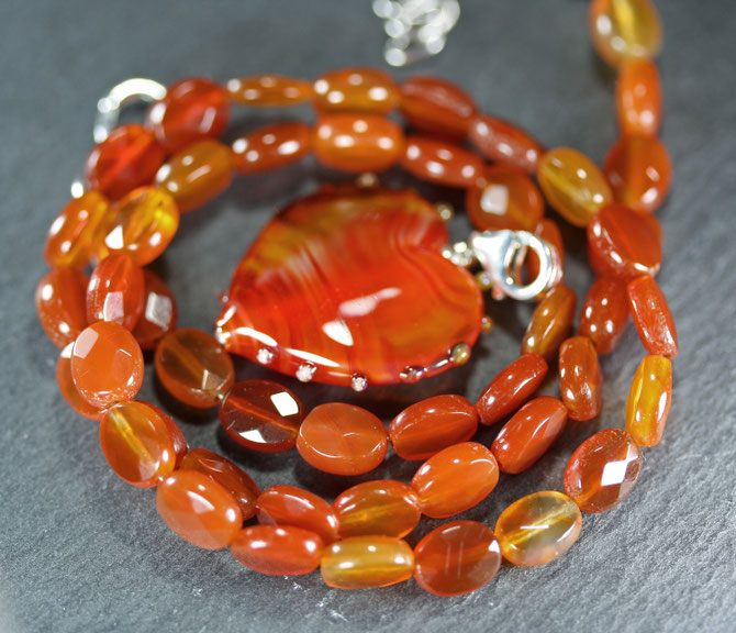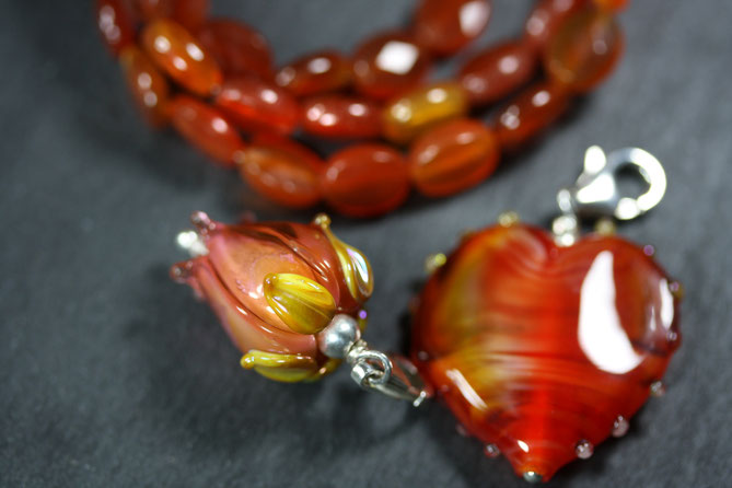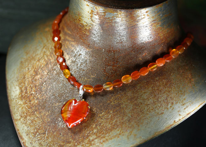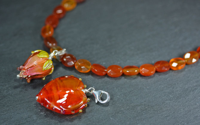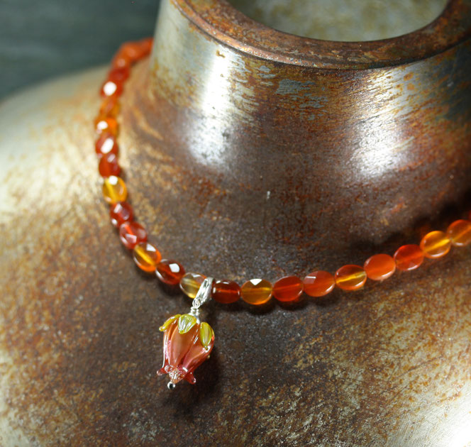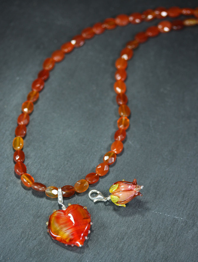Materialien: echter Karneol facettiert geschliffen, 925er Silber, Muranoglas
