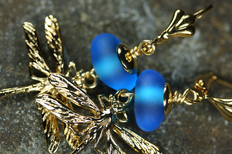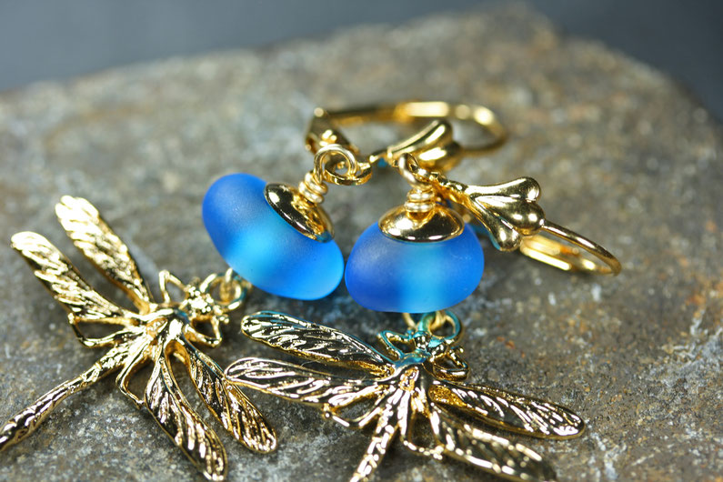Dieser Ohrschmuck trägt das Leuchten des Wassers und die verspielte Schönheit der Libellen in sich.