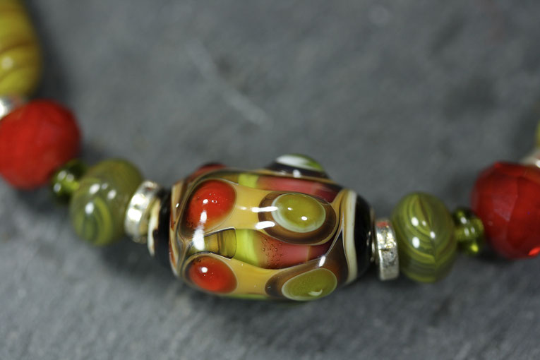 Verwendete Materialien: Handgefertigte Glasperle, Böhmische Glasperlen, Metallelemente