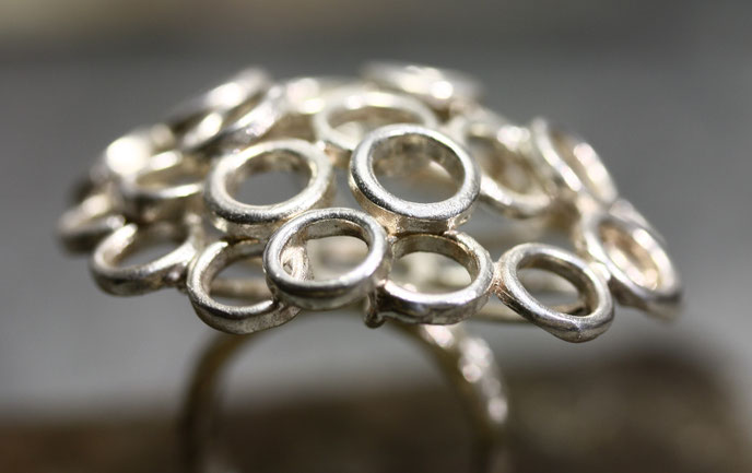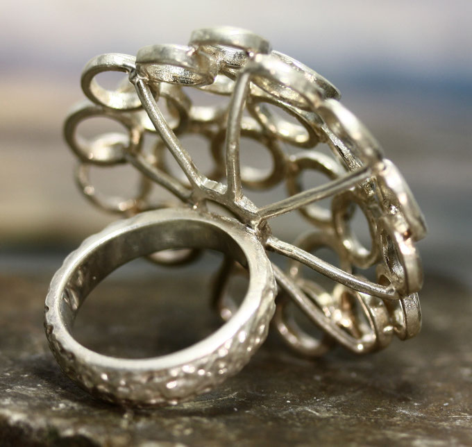 Ein wahrer Hingucker, ist dieser spacig-geformte Fingerschmuck.