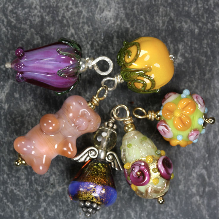 Anzahl: 6 Stück handgefertigte Unikat-Glasperlen/ Anhänger