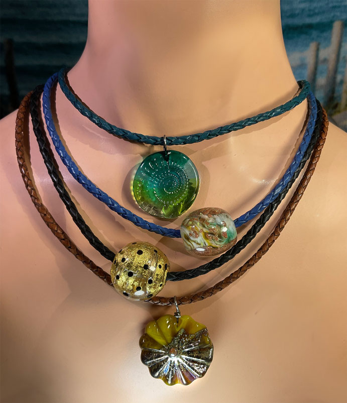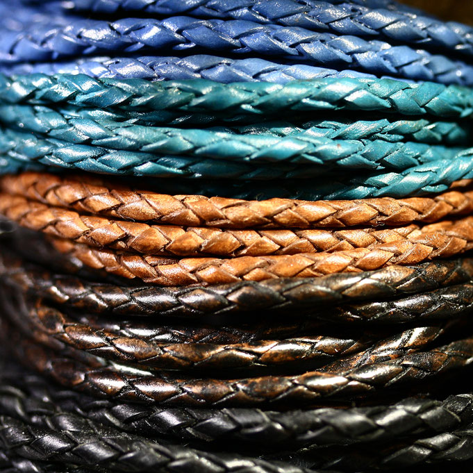 Die Halsketten bestehen aus echtem Flechtleder und sind kompatibel mit den meisten bekannten und handelsüblichen Wechsel- und Sammelschmucksystemen (Großlochperlen/ Beads/ Charms).