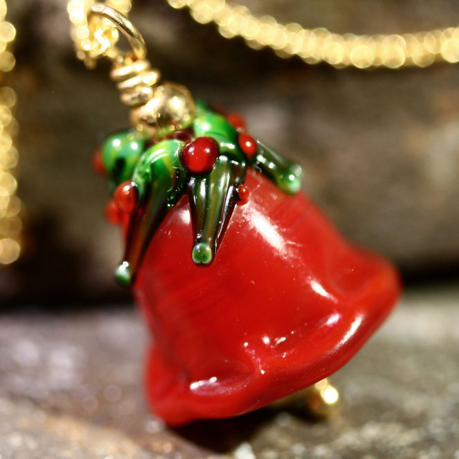 Die schöne rote Weihnachtglocke ist handgefertigt aus Muranoglas.