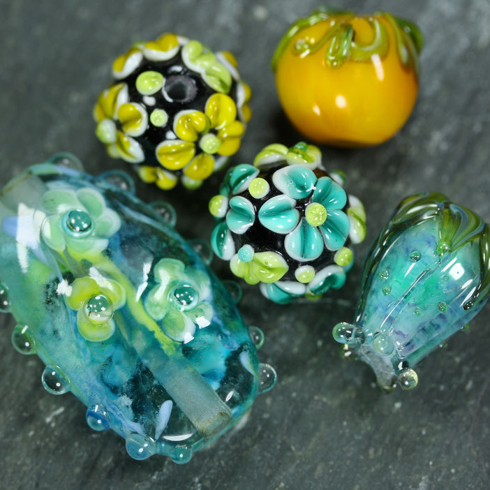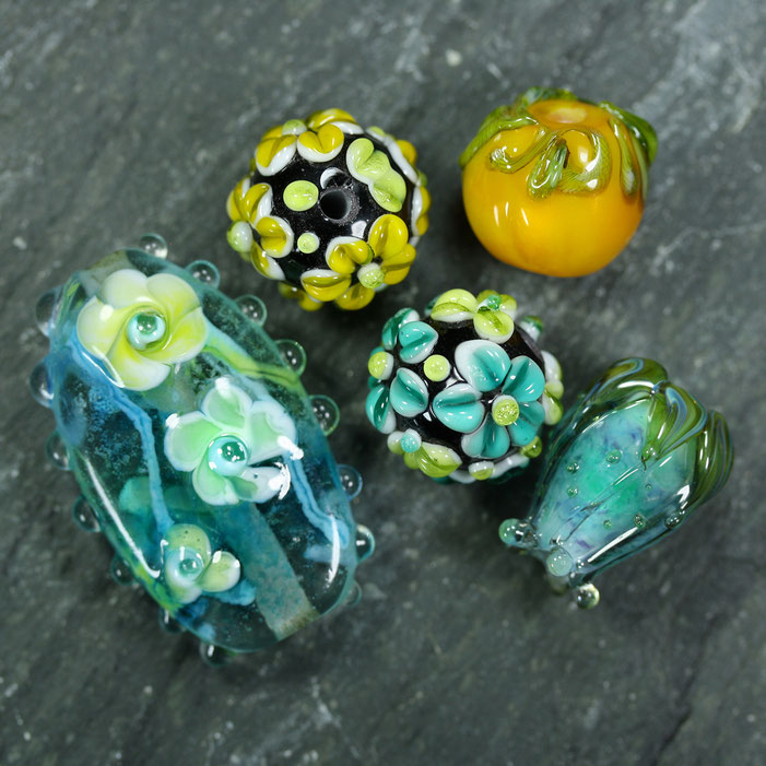 Anzahl: 5 Stück handgefertigte Unikat-Glasperlen