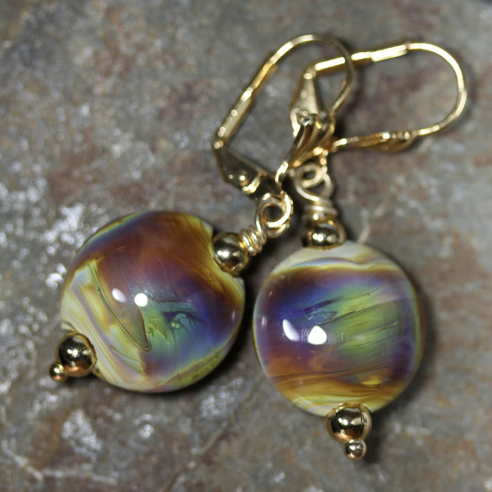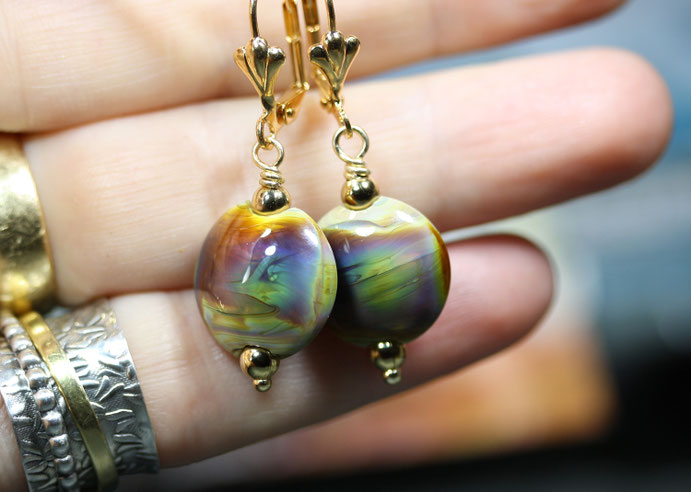 Ohrschmuck mit schillernden bunten Glasperlen.