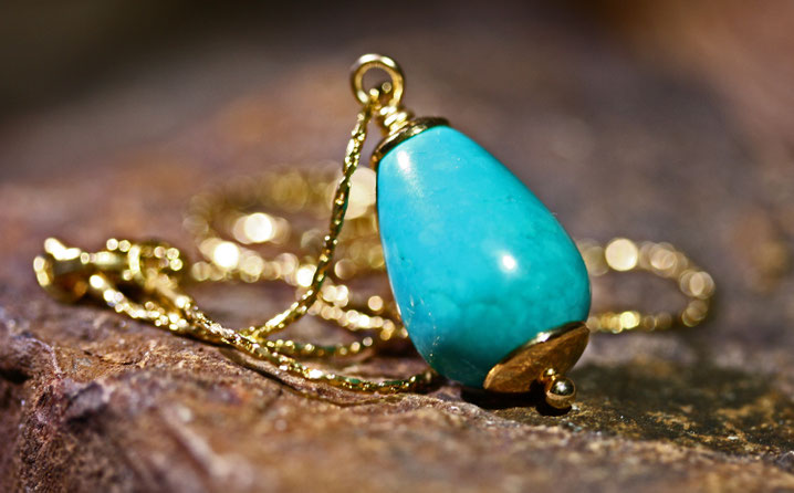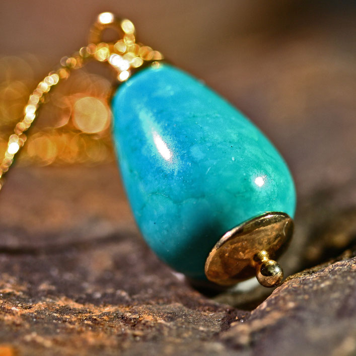 Der echte Türkis-Tropfen ist von seltener Qualität, er hat eine reine, kräftige Farbintensität.