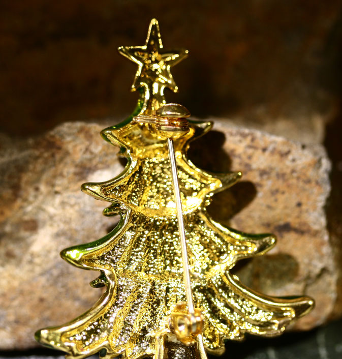 Die wunderschöne Brosche ist emailliert und aufwendig mit funkelnden Strass-Steinchen besetzt.