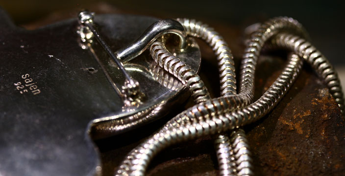 Den Kettenanhänger/Brosche kannst du mit oder ohne Silberkette bekommen.