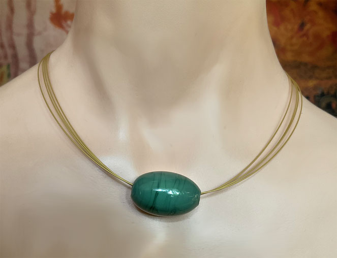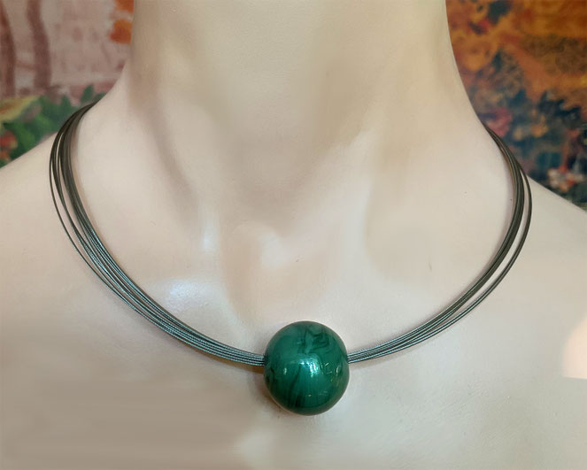Solo-Glasperlen für Halsschmuck "Petrol-Kugel/Olive"