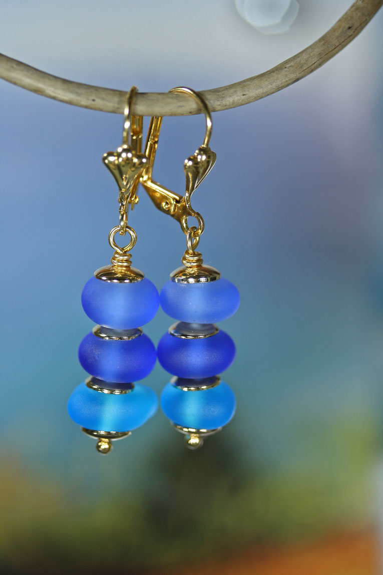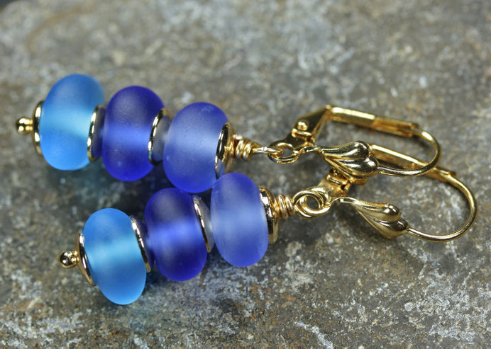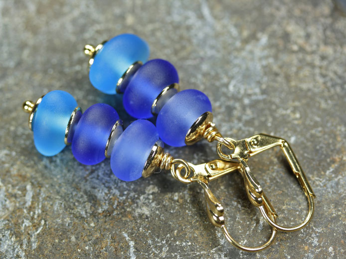 Ein Ohrschmuck, der die Tiefen des Meeres einfängt. Leuchtendes Türkis und satte Blautöne in Kombination mit Gold - Farben wie ein karibischer Traum.