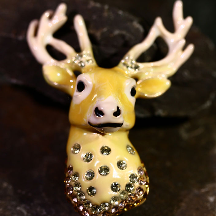 Diese entzückende, edle Hirsch-Brosche ist sehr hochwertig emailliert und mit funkelnden Strasssteinchen besetzt. Auf der Rückseite befindet sich eine sichere Nadelschließe. Die Brosche schmückt dich nicht nur in der Weihnachtszeit, sondern passt auch hervorragend in die gesamte kalte Jahreszeit - zum Oktoberfest genauso wie zum Winterspaziergang im Februar.