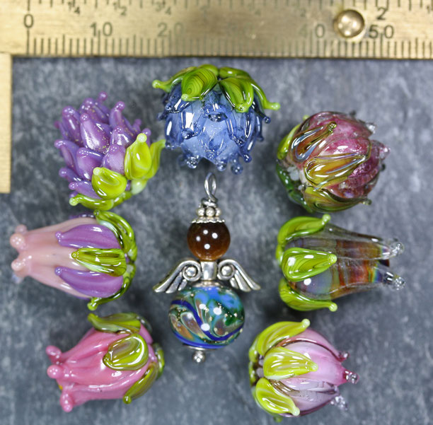 Anzahl: 8 Stk. handgefertigte Unikat-Glasperlen/ Kettenanhänger