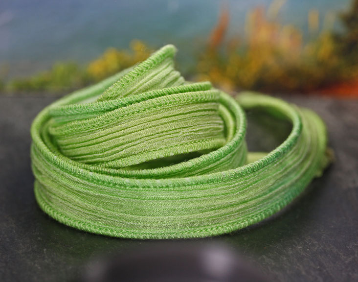 Das Band ist in Handarbeit aus echter Seide angefertigt. Durch einen Knoten oder eine Schleife im Nacken lässt sich die Länge individuell variieren. Ob mit oder ohne Anhänger, es ist ein lässiger und farbenfroher Blickfang. Meine handgefertigten Seidenbänder sind absolut farbecht, denn sie werden von mir nach der Farbgestaltung kurz gekocht, dadurch können sie problemlos gewaschen und gebügelt werden. Ich verwende hochwertige französische Seidenfarben.