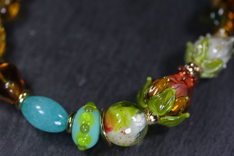 Verwendete Materialien: Handgefertigte Glasperlen, Böhmische Glasperle, Citrin, Achat, Metallelemente