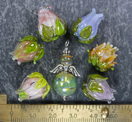 Anzahl: 7 Stück handgefertigte Unikat-Glasperlen/ Anhänger
