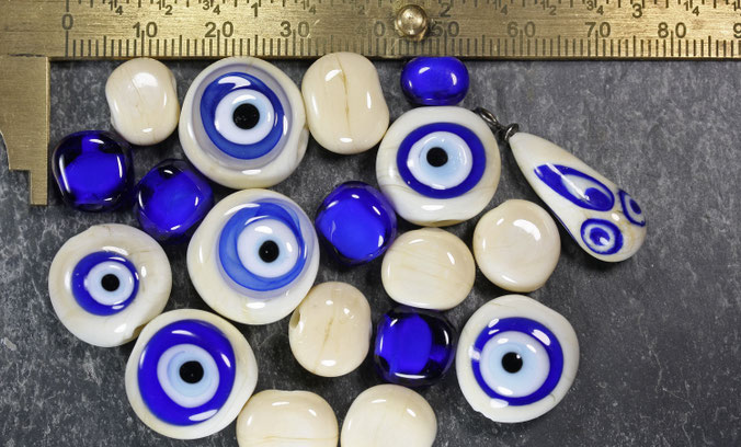 Anzahl: 19 Stück handgefertigte Unikat-Glasperlen ( 1x Kettenanhänger)