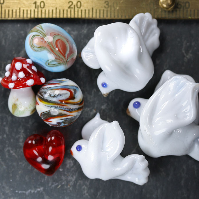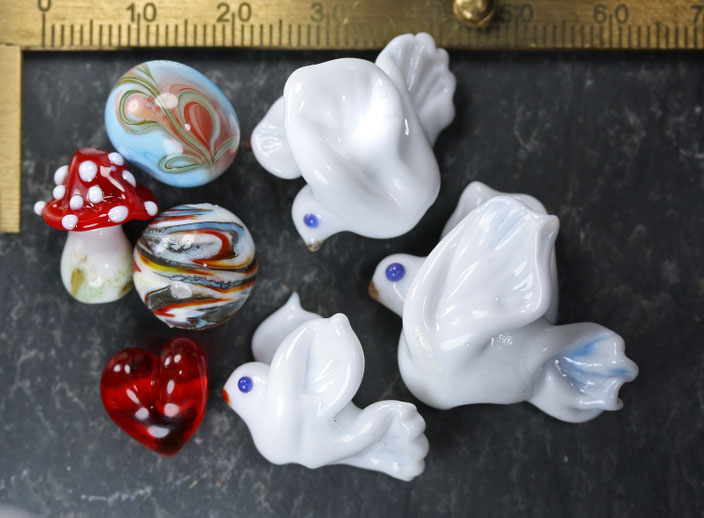 Anzahl: 7 Stück handgefertigte Unikat-Glasperlen