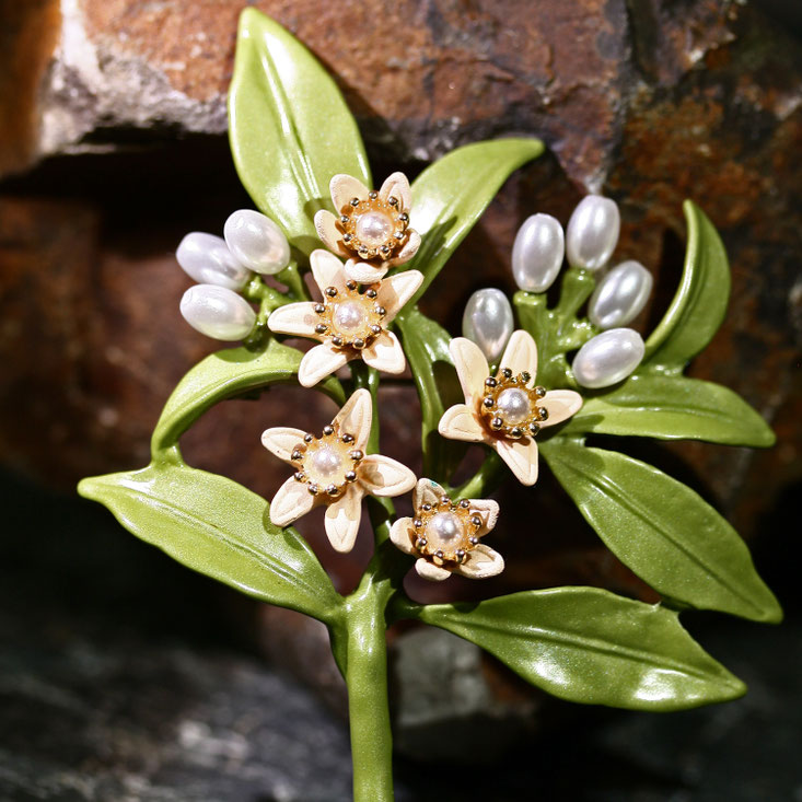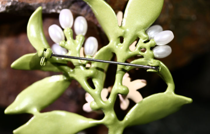 Die Brosche hat auf der Rückseite eine sichere, große Nadelschließe.