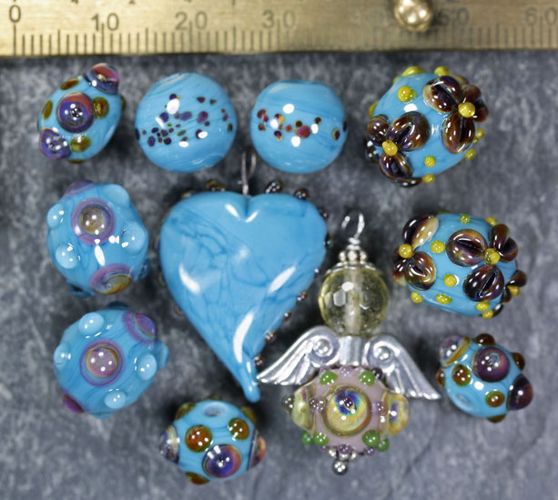 Anzahl: 11 Stück handgefertigte Unikat-Glasperlen/ Anhänger