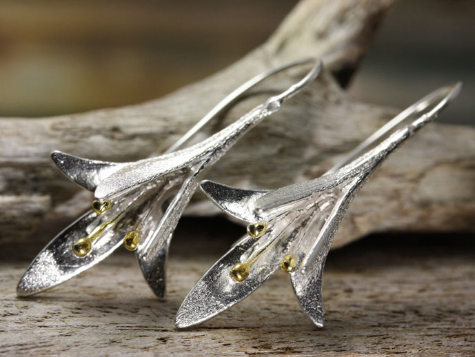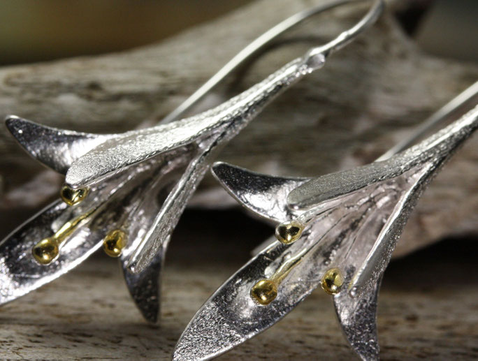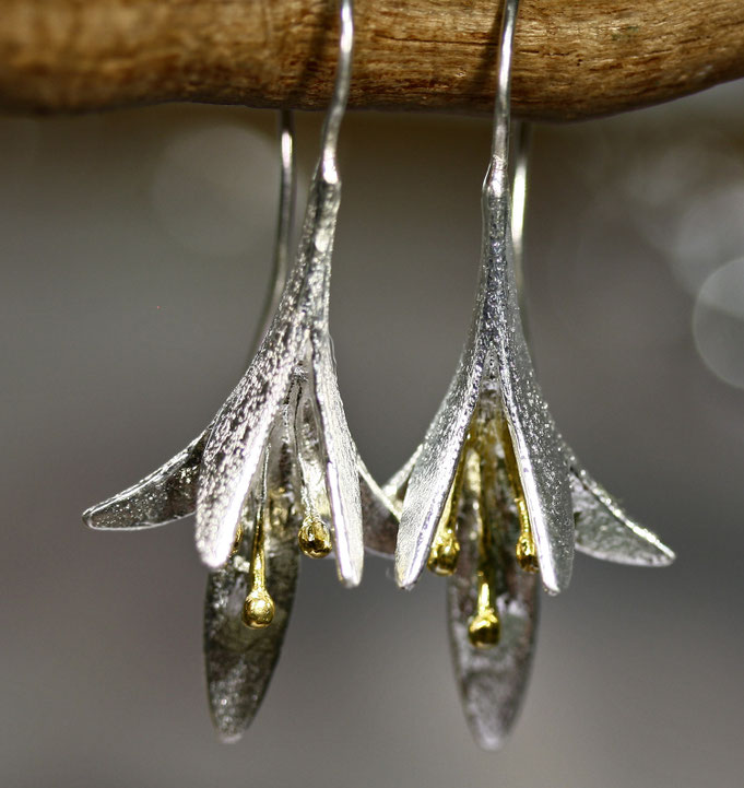 Dieser entzückende Blütenohrschmuck hat kleine vergoldete Blütenstempel in der Blumenmitte.