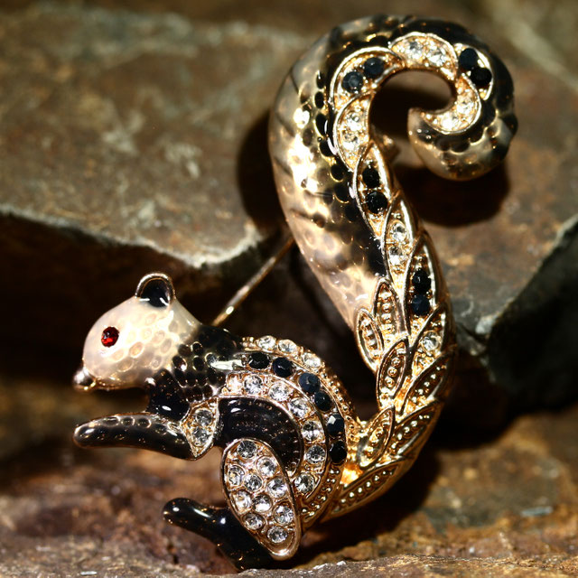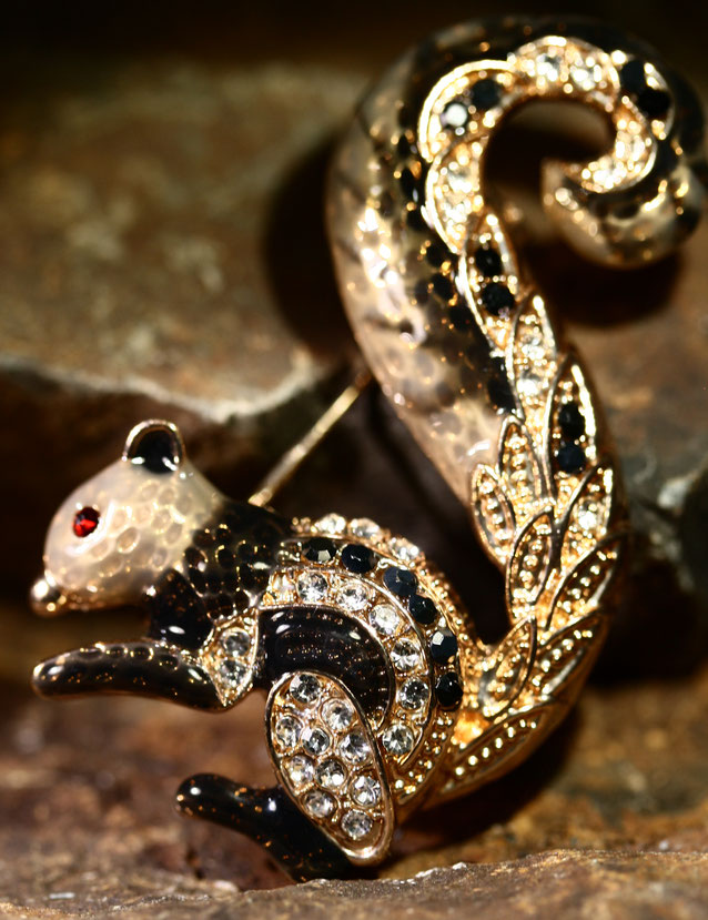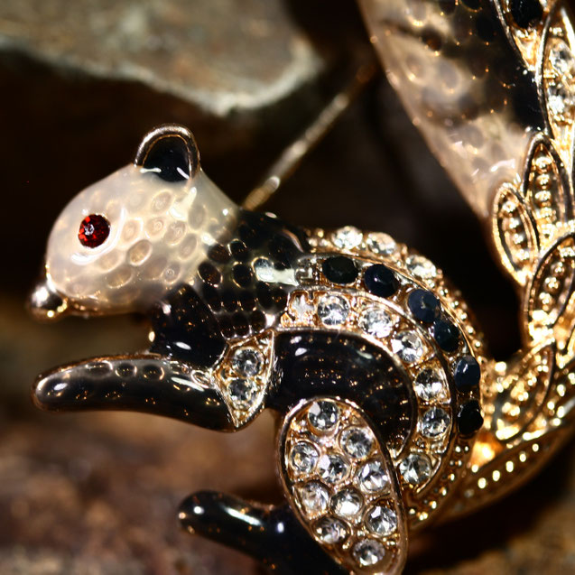 Brosche "Eichhörnchen" Schwarz Grau Gold
