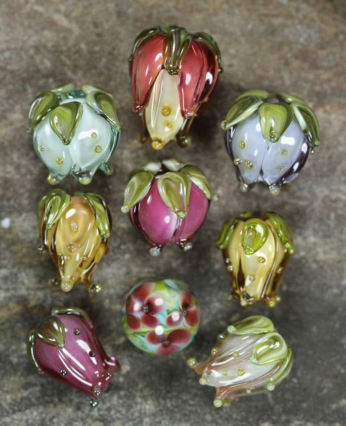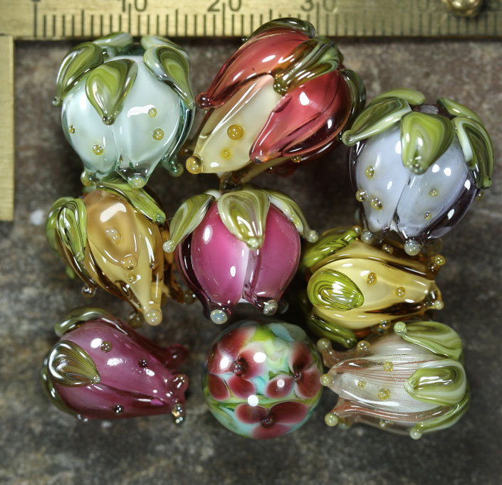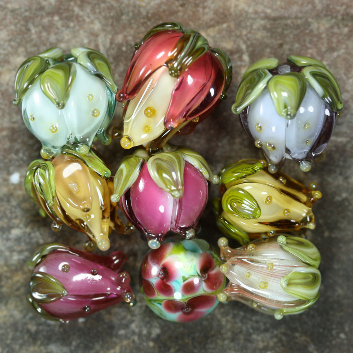 Anzahl: 9 Stück handgefertigte Unikat-Glasperlen