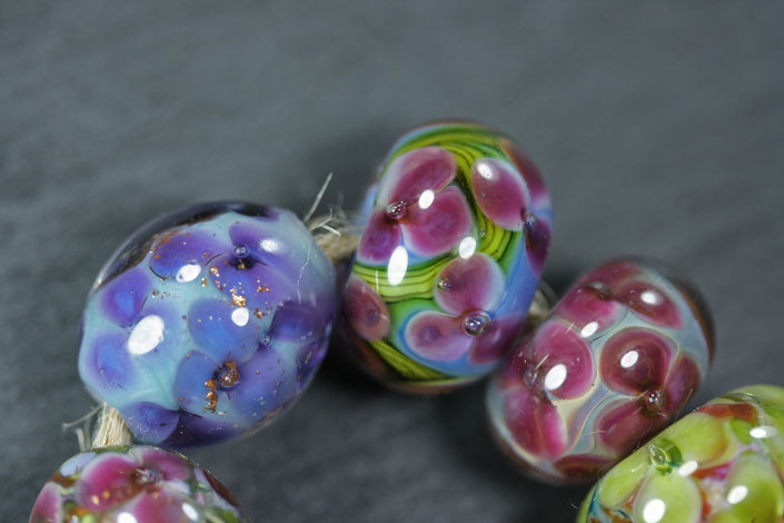 Anzahl: 7 Stück handgefertigte Unikat-Glasperlen