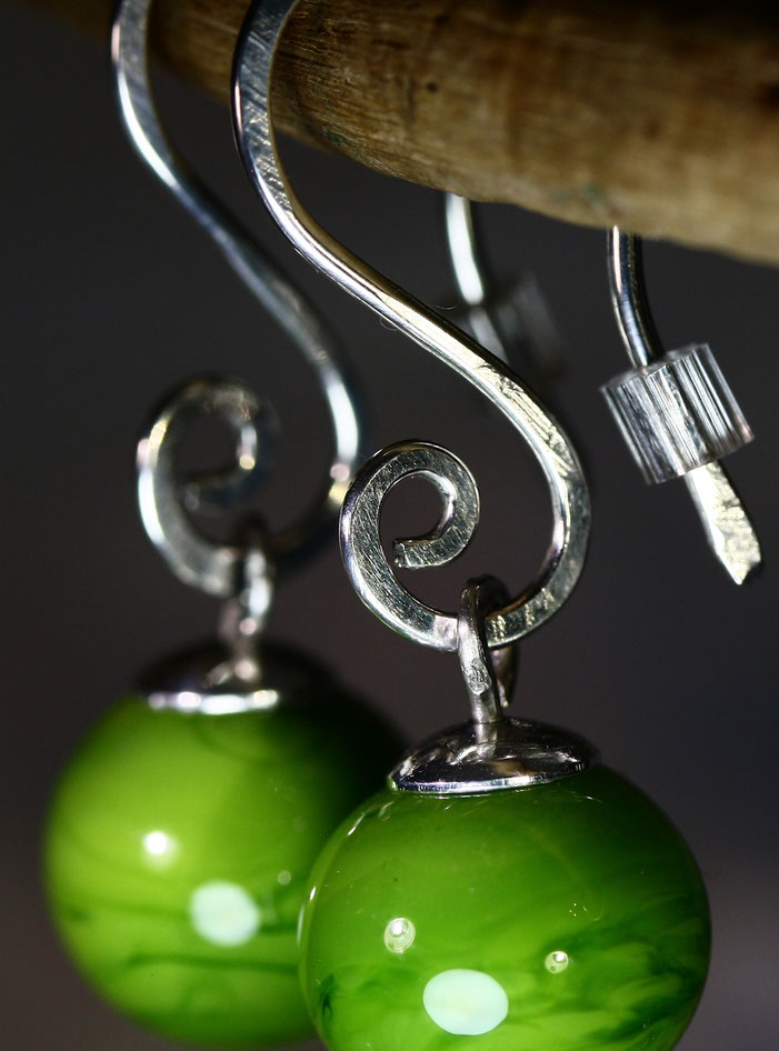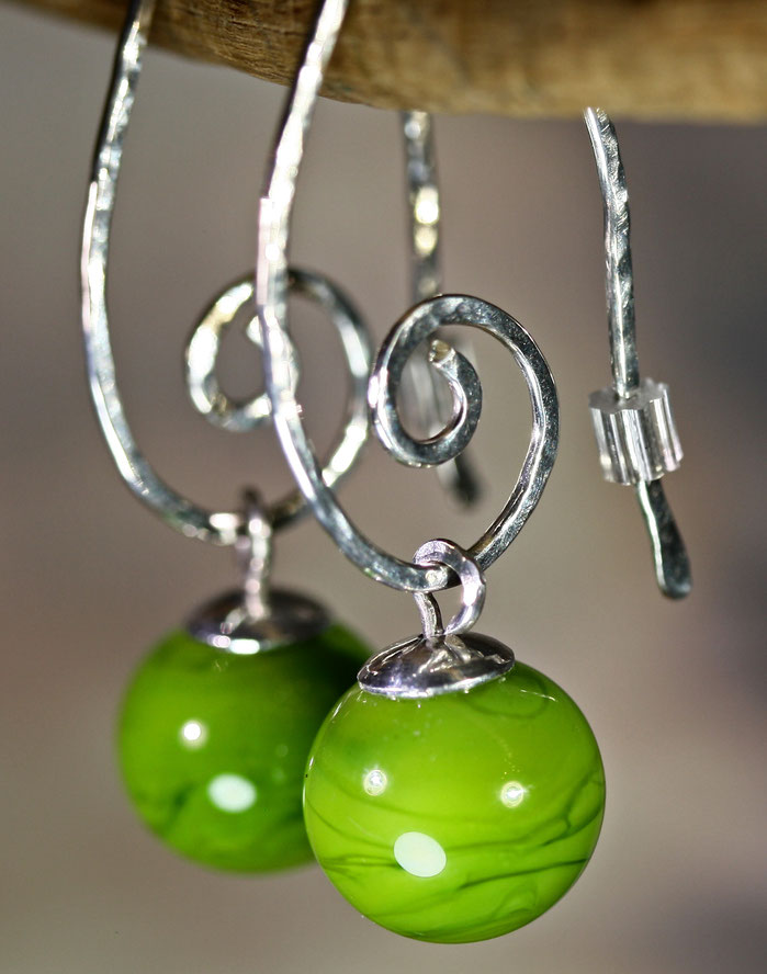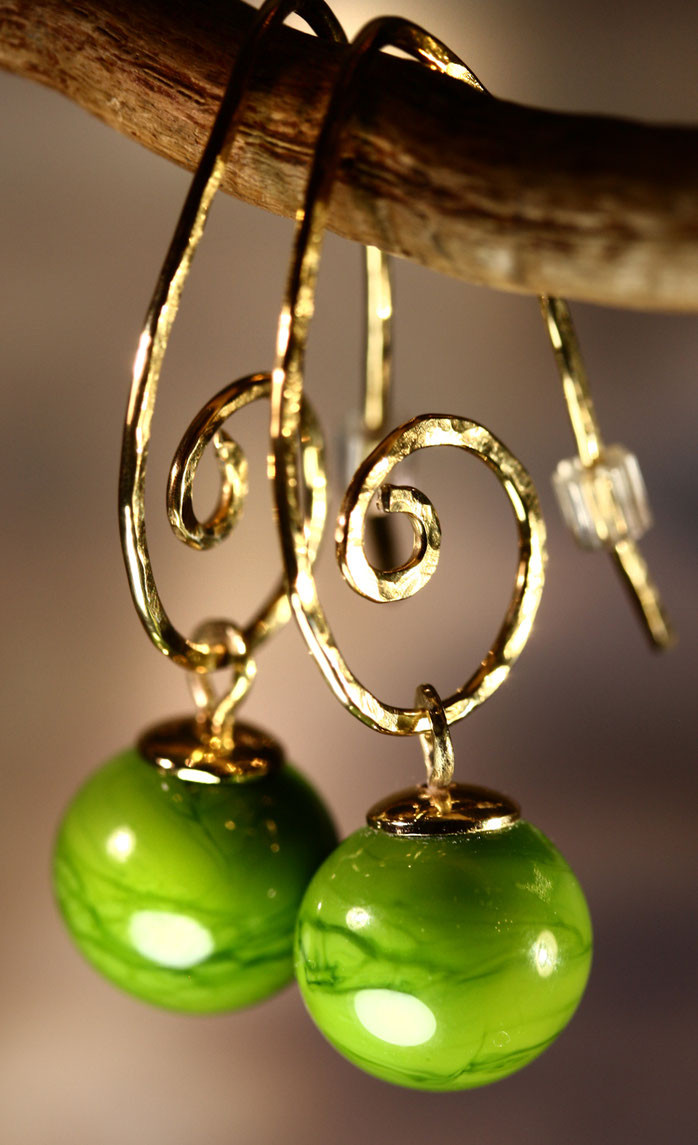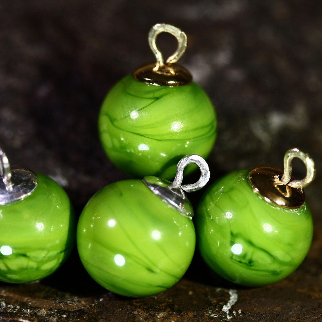 Kugel-Anhänger für Ohrschmuck "Grün-Gold/Silber"