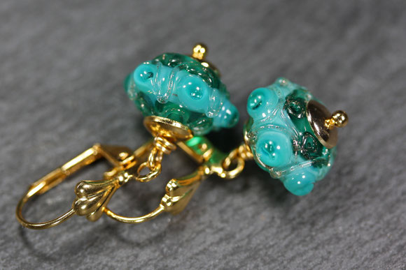 Die Glasperlen sind mit einem hübschen Dot-Muster und zarten Linien aus Aventuringlitzer verziert.