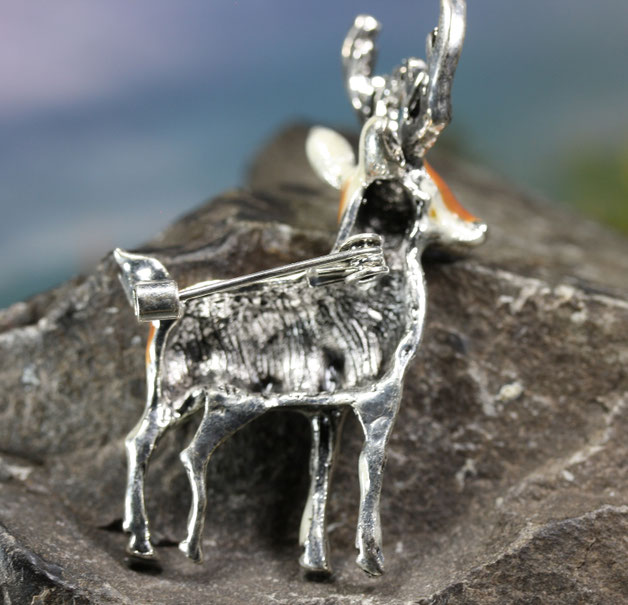 Die niedliche Brosche ist emailliert und auf der Rückseite befindet sich eine sichere Nadelschließe.
