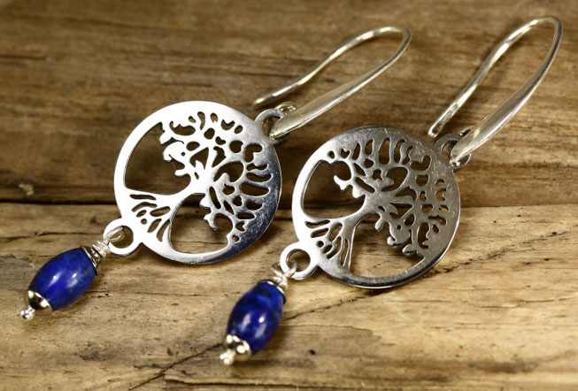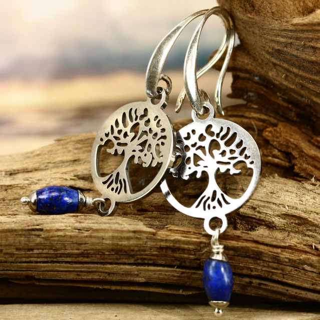 Die Lebensbäume sind mit echtem Lapislazuli-Perlen kombiniert.