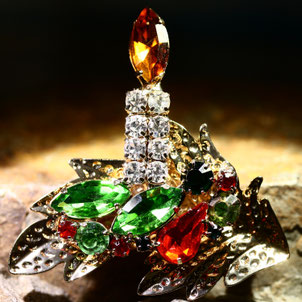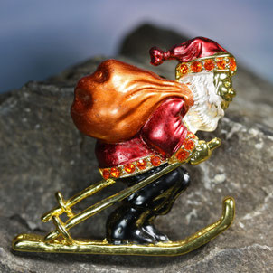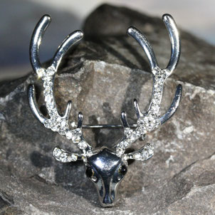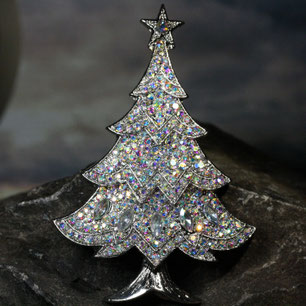 Eine funkelnde Brosche an Wollmütze, Schal oder Mantel,